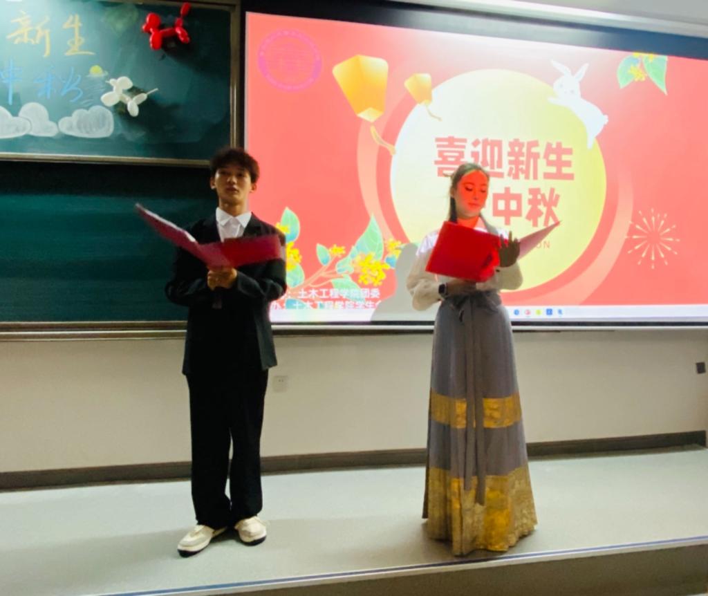 月圆中秋夜,团圆共此时。又是一年花好月圆,土木工程学院举办“喜迎新生庆中秋”晚会,党委副书记兼副院长邵先锋、辅导员王彬与2023级留校新生参加晚会。