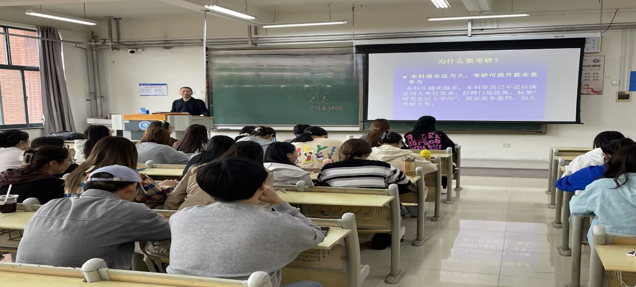 讲座针对人文与外国语学院英语专业2021级三个班学生。大三学生从基础阶段迈入高年级阶段,距离毕业时间越来越近,很多学生学习出现困惑,对未来心存忧虑。为了答疑释惑,学院专门安排此次考研讲座。高教授首先分析了英语专业学生考研的原因,探讨了考研新趋势,指出了英语专业考研所具有的优势,利用近十年数据对比了考研、考公和留学孰难孰易,进而指出考研是适合绝大多数同学的明智之选。讲座剖析了如何确定考研目标城市,如何选择考研目标院校,指出理想的目标院校应该是在个人能力与个人抱负的交叉点上,量力而行,成功为上。详析了如何选择考研适宜的专业,解释了报考英语专业和跨考其他专业各有什么优势,基于我院英语专业历年考研大数据分析了适宜报考的考研专业与方向,剖析了考研学生准备过程中经常遇到的问题,提出了应对考研的有效对策。