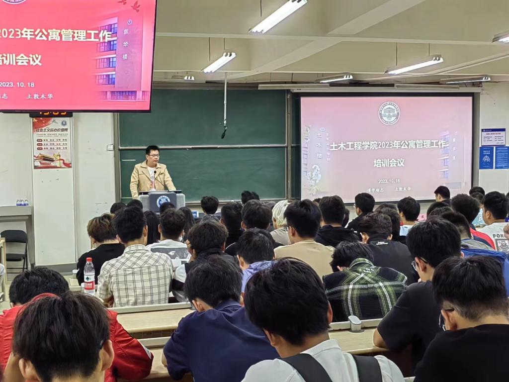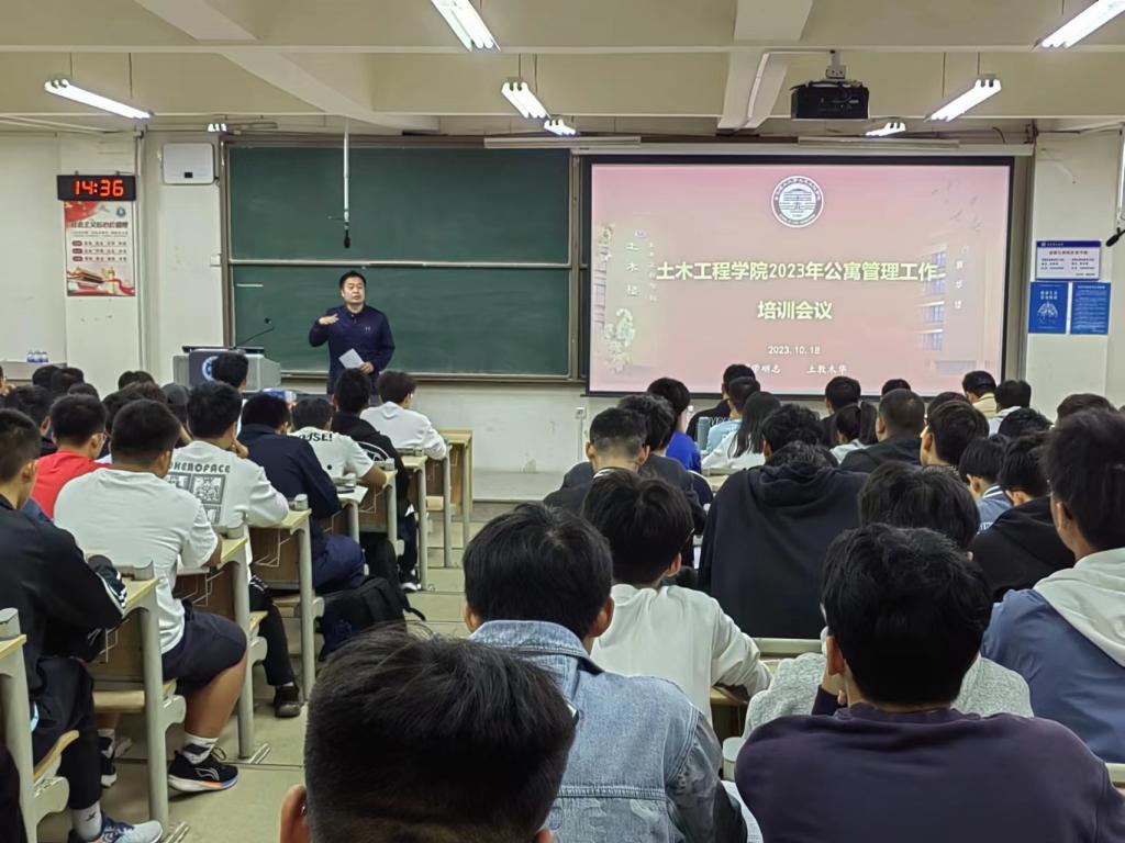 为提升学生队伍公寓管理服务水平,构建系统完整的公寓管理工作链条,夯实“一站式”学生社区建设基础,为学生提供优质住宿环境和社区服务,10月18日,土木工程学院在B211教室召开公寓管理工作培训会。学院党委副书记、副院长邵先锋,院学工办主任、团委书记王俊富,各年级辅导员、学院全体舍长、层长、生活委员和宿管会成员参加。学院宿管会主任李继鑫主持培训会。