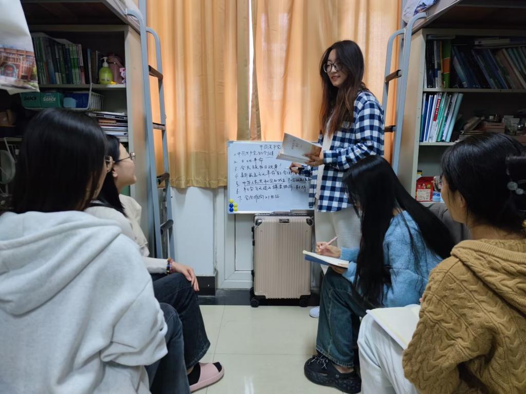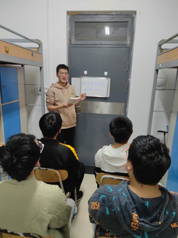 党建+党史教育,党员先锋创新宣讲“新阵地”。小小题板不仅是宿舍学习的小“黑板”,更是党史学习的“宣传栏”。为进一步延续党史学习氛围,理学生学生党支部成立“宿舍宣讲小分队”,充分挖掘学生宿舍的育人功能,于近日开展了“小题板进宿舍,党史宣讲我担当”活动。学生党员深入学生宿舍为积极分子、普通同学开展宣讲,他们以《中国共产党简史》、《新中国极简史》为宣讲教材,结合平时的学习理解与体会,用通俗易懂的语言进行讲解。宣讲结束后,同学们纷纷表示喜欢这样的宣讲方式,在轻松的氛围中不仅学习了党史,更感受到青年学生身上担负的重任。