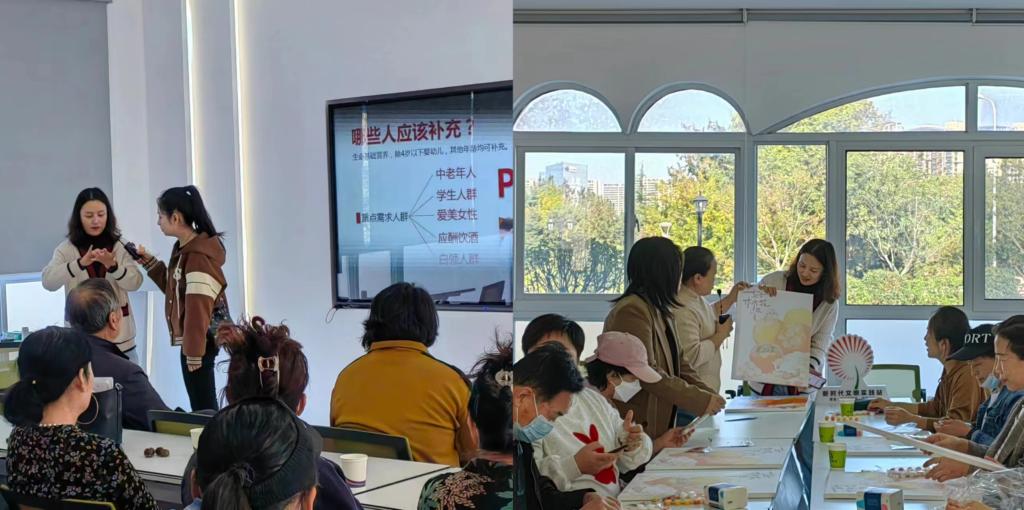 乐享重阳,健康同行。志愿者带领南岛社区的老人们制作带有秋天主题色彩的手工作品,聆听他们年轻时的故事和经历,分享彼此的生活和情感。同时,协助邀请健康专家为社区的老年人开展保健知识、疾病预防和治疗等内容的健康讲座。