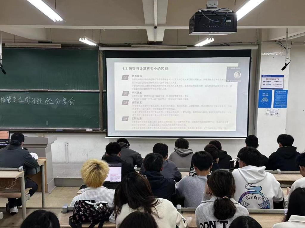为进一步加强学风建设,引导2023级学生学有方向、学有目标,推进“专业+思政”教育走深走实。近日,管理工程学院信管专业开展学习经验分享会,邀请到学院2023届信管专业保研学生程芙蓉主讲,2023级全体信管专业学生参加。