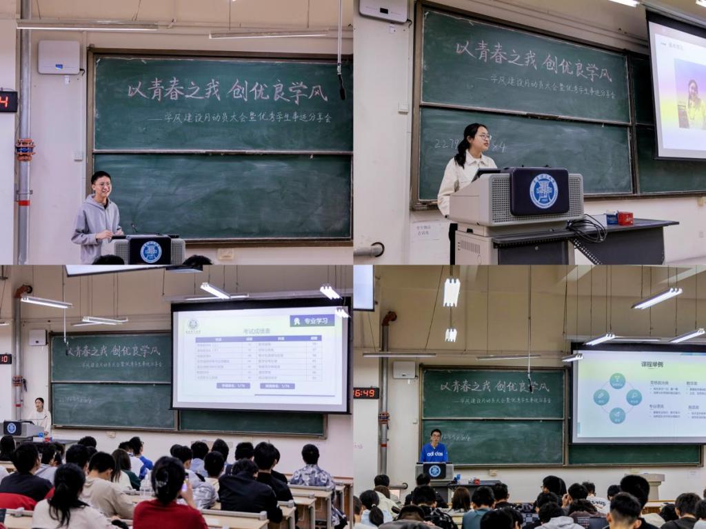 通信工程专业史良俊同学介绍了她在实验室钻研的艰难困苦以及喜悦收获。同时讲述了她身为班级团支书团结带领同学一起学习,共同进步的经历。并且鼓励同学们勇于面对新的挑战,相信努力终会战胜困难。杨亚霖同学结合自身实际,向同学们分享了一些实用的学习方法,为同学们提供了更为清晰的学习思路。多方面多维度地对学习进行了详尽的分析,层次分明,条理清楚,并结合自己的学习经验,给同学们提供了宝贵建议。分享结束后,同学们纷纷表示,此次大会给大家留下了深刻的印象,激发了同学们对学习的热情和动力。为接下来的学习和生活确定了新的目标和方向,同学们将以优秀学生为榜样,勤奋努力,奋勇向前,以更加饱满的姿态去面对接下来的挑战。