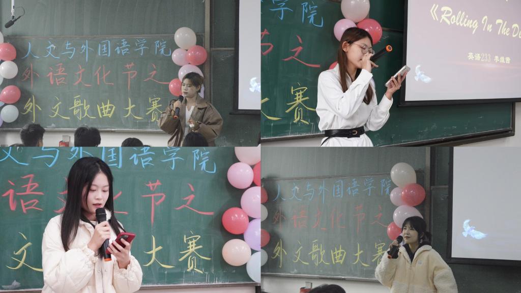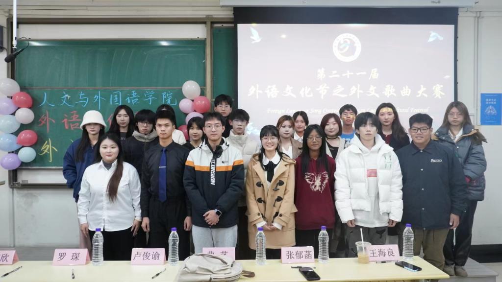 11月15日,人文与外国语学院在主教学楼B533举办“面向世界,奔向未来”外文歌曲大赛,来自全校的21名优秀选手参赛。大赛邀请了第二十届外文歌曲大赛冠军、校团委艺术发展中心、校大学生音乐协会、校大学生艺术团负责人等组成评委团,对选手的语音语调、音准节奏、歌曲内容等方面进行综合评分。