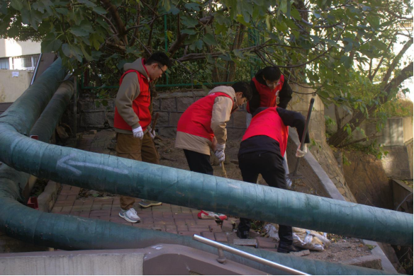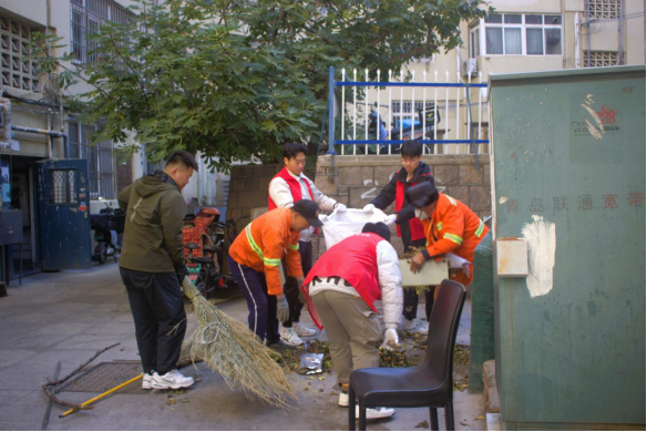 在实践活动中,志愿者们被分配了不同的任务。志愿者们拿着劳动工具,协助环卫工人进行清扫工作,让道路更加干净整洁,为行人提供更好的环境,展现出大学生积极向上的风貌,为社区增添了新的活力。