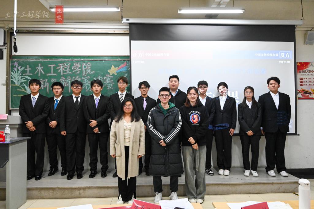 20个新生班级经过初赛激烈角逐,最终土木233班和交通231班进入决赛。决赛以“中国文化浪漫在繁/简”为辩题。中国文化源远流长、博大精深,在“小雪”节气这个特殊的日子里,双方辩手围绕“繁”和“简”何者更能展现中国文化浪漫的特质展开激烈辩论。比赛过程中,双方旁征博引,唇枪舌剑,敏锐地抓住对方论述中的漏洞并展开猛烈的攻势,辩手们竭尽全力完成各自所承担的任务,为团队的胜利奋斗到最后一刻。现场气氛热烈,精彩不停,场下观众激情澎湃,辩论中不时掌声雷动。经过激烈角逐,反方交通231班四辩荣获最佳辩手,正方土木233班取得最终胜利。
