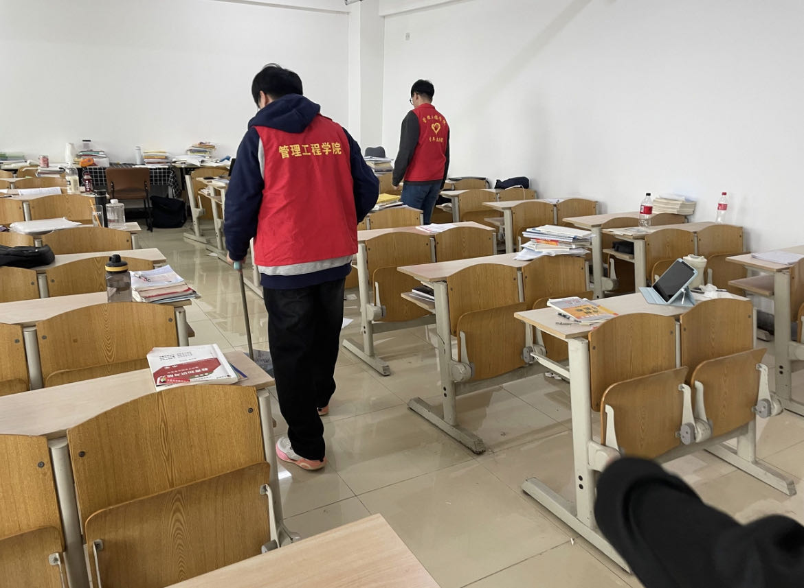 临近考研,为维持考研学子良好学习状态,改善考研备考环境,北一公寓功能型党支部的同学们自愿主动排班为考研同学提供各项帮扶,帮助考研学子打扫考研自习室,帮助考研同学取快递、打印材料等,把“为群众做实事”做到考研学子门口,更做到考研学子心里。2020级考研学生王圳源表示:“感谢学弟们这几天为我们打印复习材料,还把党员值班表贴在了自习室门口,方便我们随时寻求帮助,我们将以更好的复习状态和考研成绩回报他们的帮扶。”