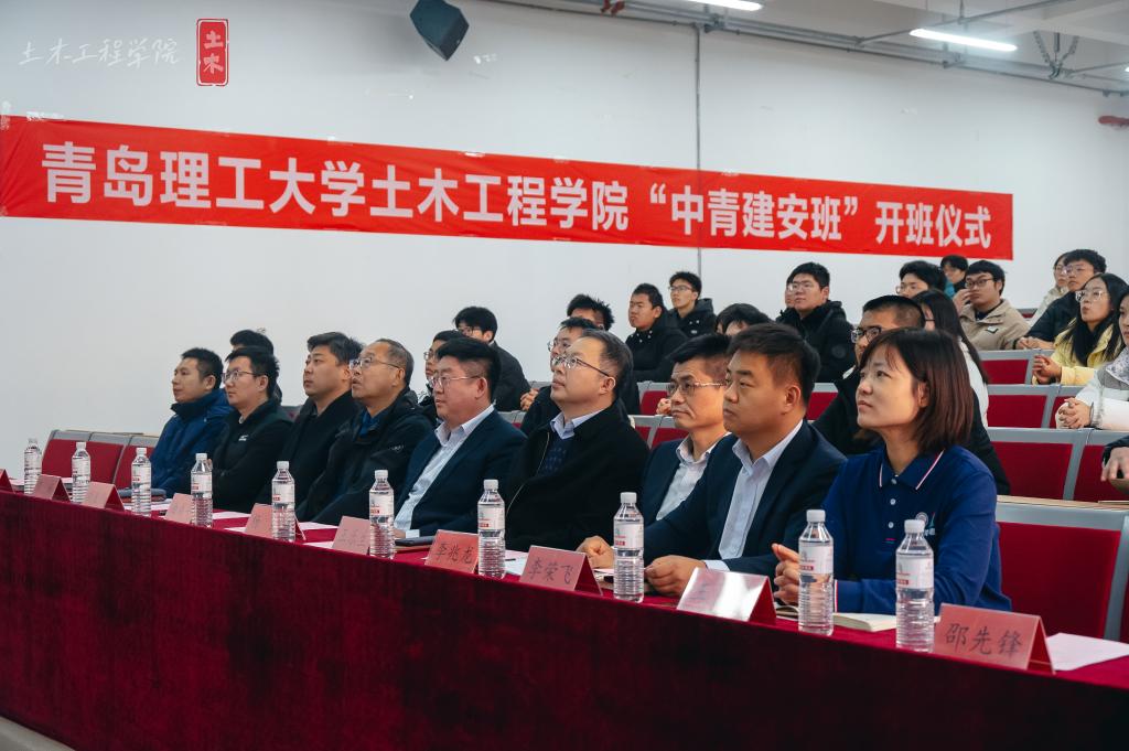 建安控股集团总裁、中青建安建设集团联席董事长杨昆,总工程师李兆龙,人力资源部总经理李荣飞,人力资源部副总经理王芳,土木工程学院党委书记王乐生,教授曲成平,副院长刘俊伟、张鹏,团委书记王俊富以及“中青建安班”53名学生参加开班仪式。学院党委副书记邵先锋主持。