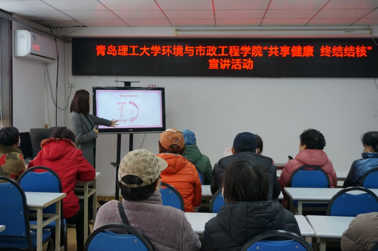 为进一步做好大学生进社区实践工作,提高学生实践能力,宣传普及结核病防治知识,动员全社会行动起来预防和控制结核病,提高市民的自我保护意识,保障自身身体健康,2023年11月29日,环境与市政工程学院给排水222班团支部结核病宣讲小队在青岛市市北区水清沟街道开展“共享健康终结结核”主题宣讲活动,旨在加强结核病防治宣传,力争从源头上减少肺结核的出现,营造一个健康文明、和谐友爱、积极向上的社会环境。