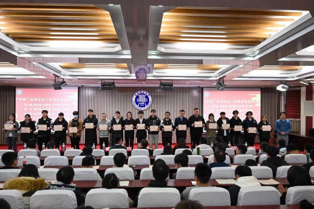 侯东帅宣读了《土木工程学院关于表彰2023年学风建设先进个人的决定》。随后曲璐莎为29名获得“烟建”奖学金的学生颁奖,韩永剑为81名获得“建 772”奖学金的学生颁奖,曾森为40名获得“环球”优秀学生奖学金的学生颁奖,与会领导向受表彰的学生颁发荣誉证书和奖品,并合影留念。