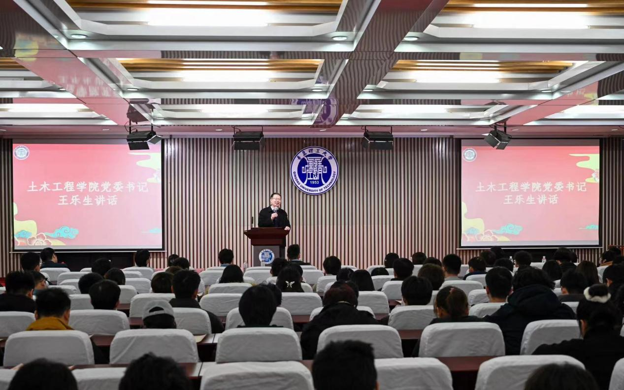 王乐生在讲话中首先对陈国平先生、烟台建设集团、环球集团在学院设立奖学金表示衷心感谢,向受到表彰的同学表示祝贺。他指出,习近平总书记说过一所高校的校风和学风,犹如阳光和空气决定万物生长,直接影响着学生学习成长。好的校风和学风,能够为学生学习成长营造好气候,创造好生态。土木工程学院党委行政高度重视学风建设,要抓早、抓紧、抓实、抓细,抓出效果。他强调优良的学风感染人、塑造人、成就人,是高等学校的立校之本、发展之魂,优良的学风能提升同学们自主学习严于律己的内生动力,从而营造出崇学、向学、竞相出彩的浓厚氛围,又反哺学风建设。他强调土木工程学院将持续坚持“三全育人”建设,抓好师德师风,以优良教风带动优良学风;将坚持严格管理,五育并举,注重学生综合素质的培养,实现德智体美劳全面发展;将坚持把学风常抓不懈,学风建设只有进行时,没有完成时。最后他勉励同学们奋勇争先,积极践行“博学砺志、土敦木华”的院训精神,要树立远大理想,做有志青年;勤奋刻苦学习,做有才青年;不惧挫折困难,做有为青年。