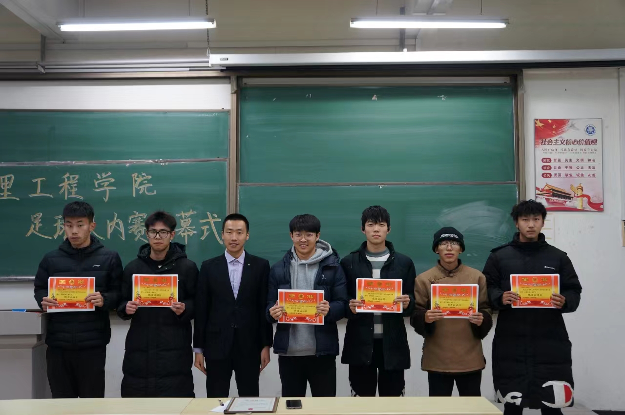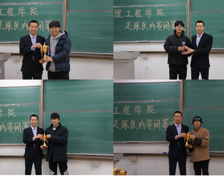 12月17日,管理工程学院足球联赛于东区足球场落下帷幕。赛后,在B218教室举办联赛颁奖仪式,辅导员高鹏磊、全体参赛运动员参加颁奖仪式。