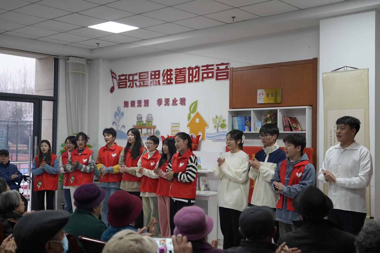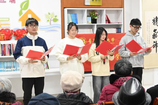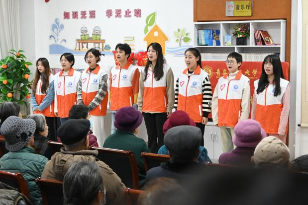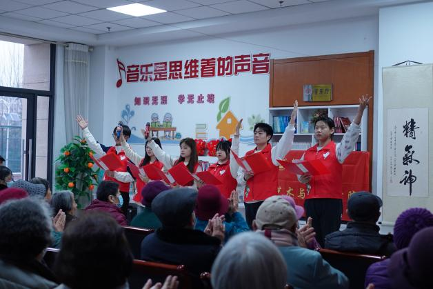 志愿者先是参观了社区福利中心,与老人们交流学习和生活。志愿者为老人们带来了精心准备的文艺节目,用实际行动切实提升老人的幸福感和获得感。歌曲《大海啊,故乡》,歌声悠扬唤醒了老人们年轻时的回忆;诗歌朗诵《黄河》,让在场的各位就如同在黄河边聆听涛声,那韵律犹如浪水般层层推进,拍打着心潮澎湃的节拍,在志愿者们激情四溢的朗诵下,仿佛看到了黄河壮丽的画面;朗诵《青年在择业时的考虑》,志愿者们以青年之声,畅谈职业观和职业选择,让老人们感受了当代青年的朝气。歌曲《越人歌》悠扬而深情,以中国式的浪漫,表达了真挚而深沉的情感。