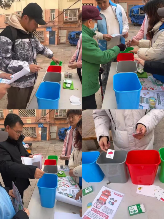 实践动员。为了引领居民在实践中运用垃圾分类知识,团队成员精心策划了垃圾分类实践小游戏,帮助居民巩固垃圾分类知识,鼓励居民将生活中常见垃圾进行分类。通过游戏实践,居民对可回收垃圾、有害垃圾、厨余垃圾等范围更加熟知,团队成员重点指出了以往容易混淆的垃圾类别,消除了居民在垃圾分类实践中的困惑。