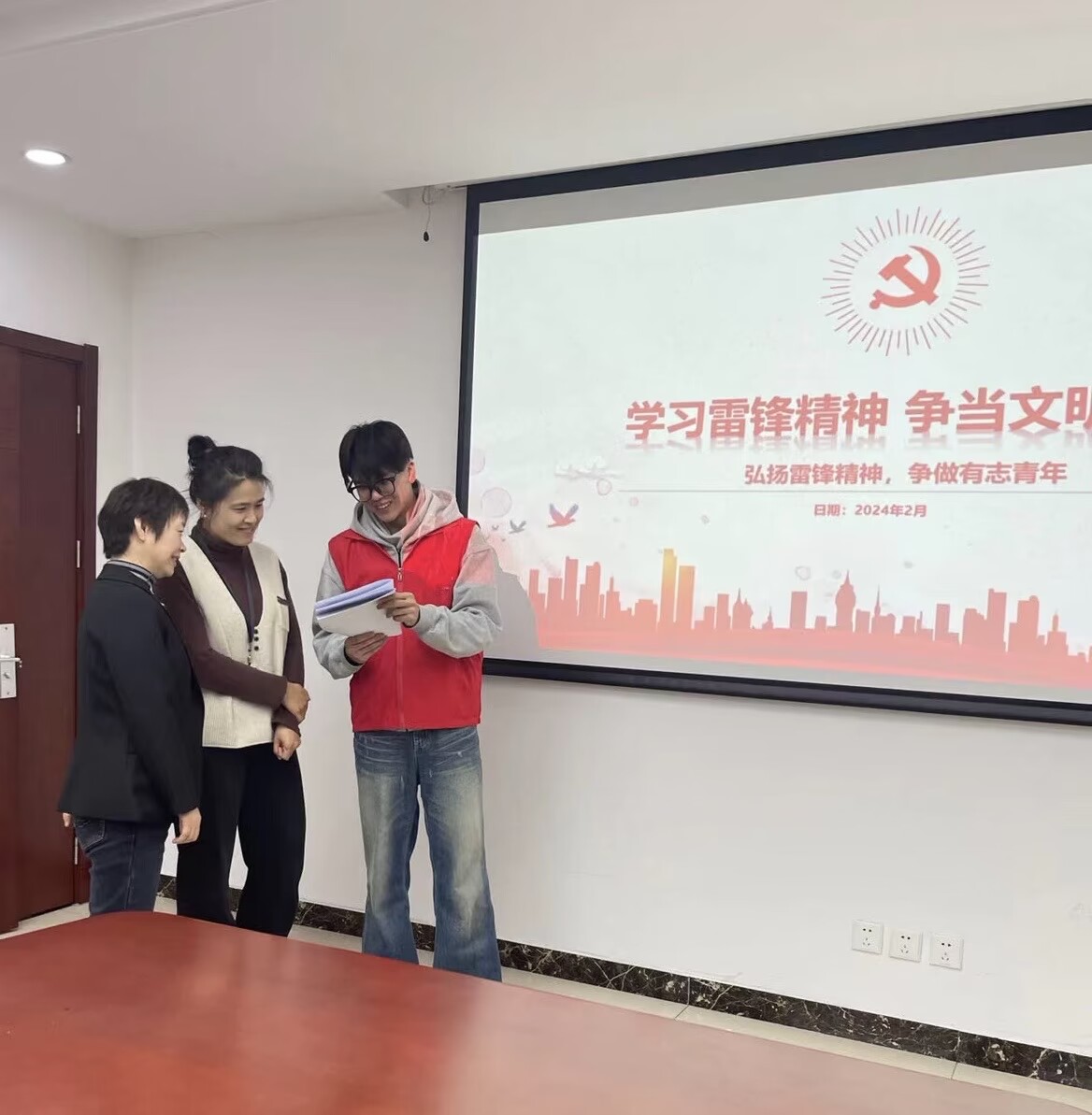 为深化学雷锋活动、弘扬雷锋精神,有助于引导大学生党员树立崇高的理想信念,培育和践行社会主义核心价值观。环境与市政工程学院“繁星”志愿者协会开展“学雷锋精神追璀璨微光”主题学习交流,通过理论学习,深刻把握雷锋精神时代内涵。环科231班杨錦琳同学绘制一幅关于雷锋精神的手抄报,展示于社区信息栏上,布局和精美的插图为社区居民宣传与巩固了助人为乐、无私奉献的雷锋精神。建环233班孙鹏辉同学在参加大朱夏社区举办的雷锋故事分享会志愿者活动,孙鹏辉说:“心有雷锋,助人成风,我们要以雷锋为榜样,积极投身志愿服务活动,为社会做出自己的贡献。”