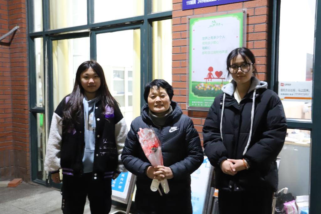 经过几个小时地精心制作,一朵朵形态各异、各具特色的小红花诞生了。为了让更多的老师们、阿姨们收到小红花,学生志愿者们用提前准备好的扭扭棒制作了50支精美的小红花。3月7日,他们手捧做好的小红花送到了教室、办公室、公寓、食堂……