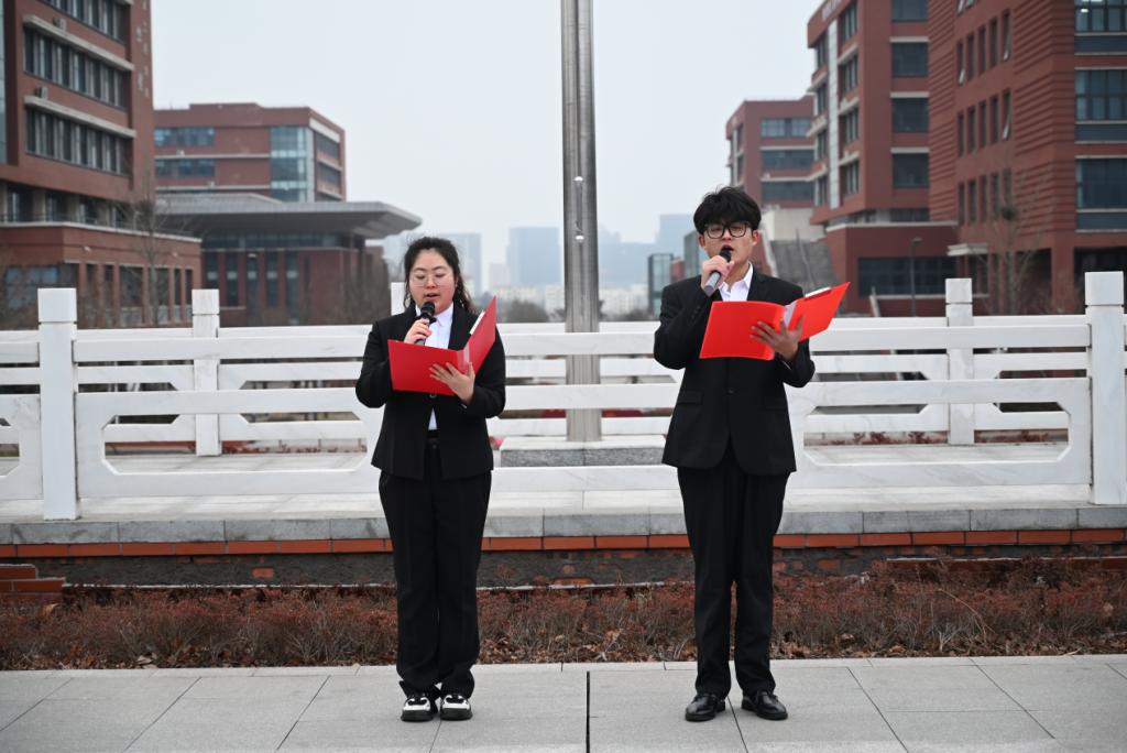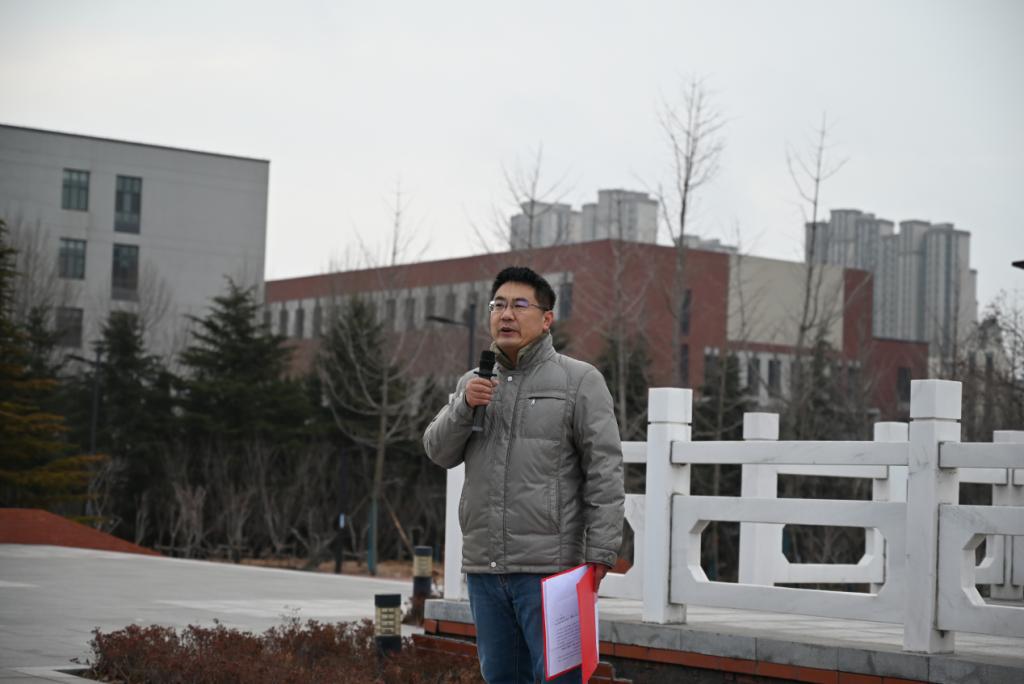 马克思主义学院教师刘亚鹏国旗下的讲课铿锵有力,他以“龙行龘龘启新程”为主题,分析当前国际形势,讲解两会中提到的高频词。他号召同学们要立大志,龙腾四海,志存高远,在新学期里,希望同学们敢于追求更高的目标、更远的梦想,要有作为中华儿女的骄傲和自豪,不断增强做中国人的志气、骨气、底气;成大才,龙腾虎跃、百折不挠,无论是在生活中还是在学习中,都要加强学习、勤奋探索、勇于实践,全面发展;担大任,鱼跃龙门,勇承重载,既怀抱梦想又脚踏实地,敢想敢为又要善作善成,自觉树立国家意识、民族意识、责任意识,把个人前途命运与国家、民族的前途命运紧紧地联系在一起,在服务社会、奉献国家中实现人生理想和人生价值。