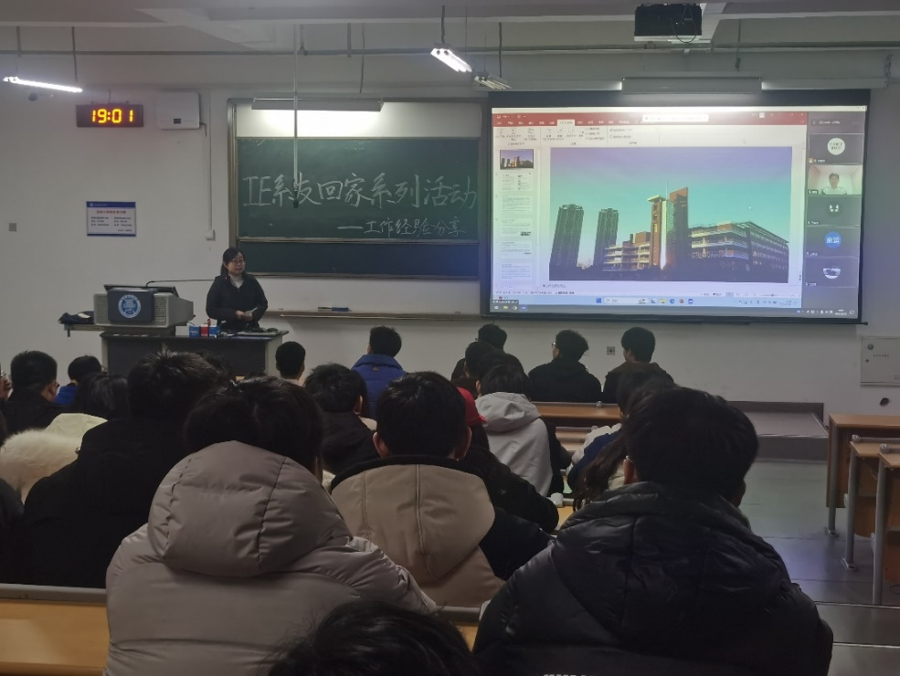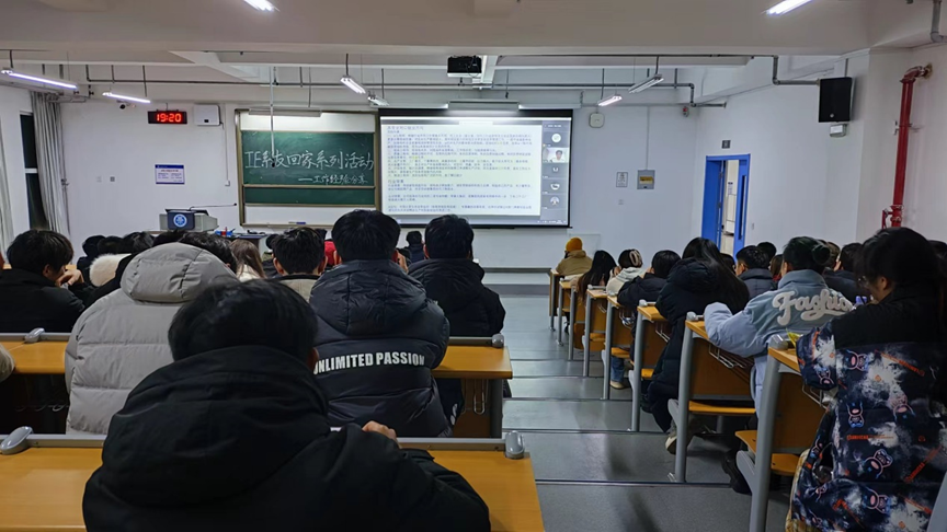 为促进系友之间的交流,给在校生提供宝贵的学习和职业发展指导,3月15日晚七点,工业工程系在C1-2-202举办“IE系友回家系列活动——工作经验分享”交流会。本次活动采用线上线下相结合的方式,邀请了工业工程系优秀毕业生2016级洪瑞、2017级王宇杰和沈剑雄进行经验分享,分享会由工业工程系主任刘玮琳主持,学院副院长万鹏,工业工程系教师代表万里洋和苏欣欣博士全程参加。本次分享会吸引了工业工程专业在校生100余人现场参与。