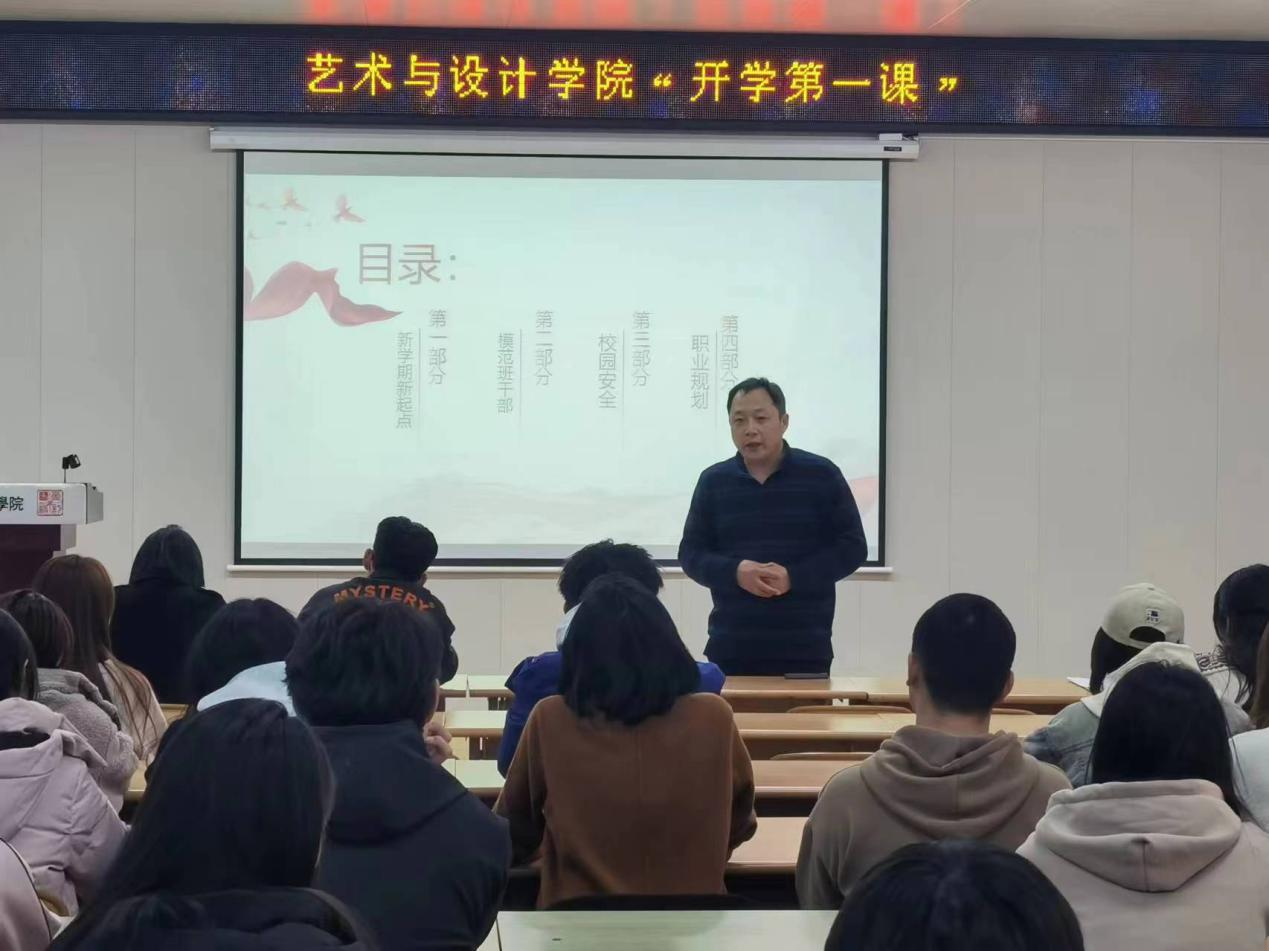 艺术与设计学院为使学生干部更好地发挥先锋模范作用,提高校园安全管理水平,助力学生职业生涯规划,3月20日下午,学院党委副书记、副院长徐佐君为学生干部讲授了“开学第一课”。本次活动围绕“新学期新起点、模范班干部、校园安全、职业规划”四个方面展开。
