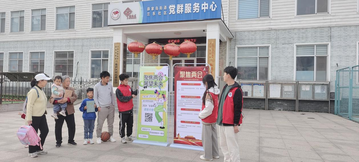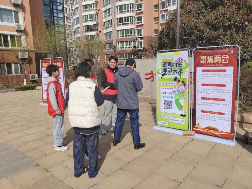 活动中,宣讲团成员走进社区与居民聊家常,一起畅谈社区这几年发展变化和幸福生活,用“身边事”解读“大政策”,用“小故事”阐明“大道理”,把全国两会精神与居民生活方方面面结合起来,围绕人居环境、医疗补助、社会保障、创业就业、养老服务等群众关心的热点问题与群众分享。认真倾听居民心声,记录群众需求,通过接地气的宣讲方式赢得了广大群众情感共鸣和精神共振,让群众真切感受到党和国家的关心关爱。宣讲团还设计了有奖答题环节,社区居民可以扫描二维码进行两会知识线上答题,学院为参与答题居民准备了精美礼品。