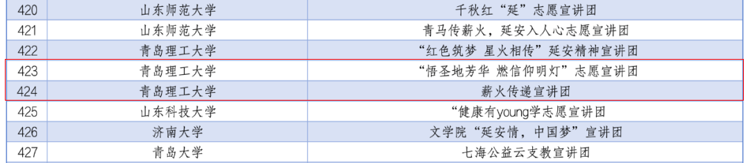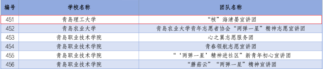 活动自2024年2月底启动以来,得到学院各班级、各志愿服务团队的广泛关注和积极参与,主办单位对所有材料进行了认真审阅,最终,学院5支团队从每个专项遴选出来自882所高校中的1000支大学生志愿服务团队中脱颖而出,成功入选。其中,“悟圣地芳华 燃信仰明灯”志愿宣讲团(队长:韩怡然,指导老师:李佳妮)、薪火传递宣讲团(队长:朱钥,指导老师:王俞苹)2支团队入选2024年全国大学生延安精神志愿宣讲团;革命心语志愿队(队长:崔子怡,指导老师:王俞苹)、“星火筑梦,繁星相传”宣讲团(队长:梁静,指导老师:宋晓峰)2支团队入选2024年全国大学生井冈山精神志愿宣讲团;“核”海清晏宣讲团(队长:陈莹蝶,指导老师:郭纯孜)1支团队入选2024年全国大学生“两弹一星”精神志愿宣讲团。