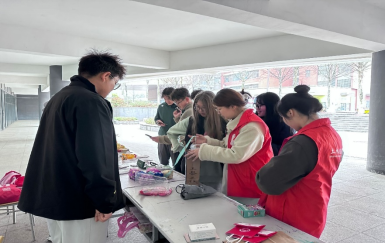 志愿者们早早抵达活动现场,根据安排有条不紊地开始准备工作:穿上志愿马甲、整理义卖物品、张贴义卖横幅。摊位上摆放了同学们捐赠各种各样的物品,有书籍、笔记本、玩偶、工艺品等,志愿者们热情地向每位路过的同学介绍物品特点、帮助大家选购。