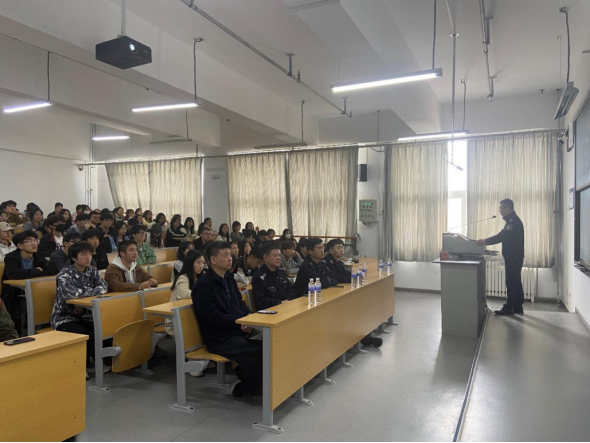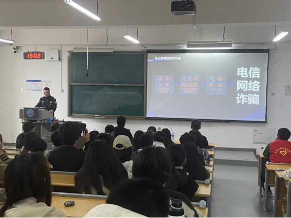 首先开发区反诈中心杨警官从反诈类型、反诈方式、案例剖析、防骗技巧等方面进行讲述,分别讲解了刷单类、投资理财类、贷款类、境外电话类等十余种易发诈骗类型,详细介绍了电信网络诈骗的常见手段、特点和危害,并结合实际案例,深入浅出地讲解了如何识别和防范电信网络诈骗。此外,杨警官还现场指引同学们进行“国家反诈中心”App的注册登录。
