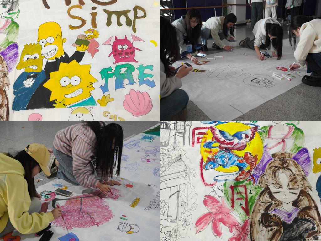 决赛阶段采用线下形式,依据初赛作品,从主题、创意、色彩、构图等方面进行了综合评比,选出十位最佳画手现场作画。参赛选手从先进文化中挖掘美育素材,在百米手绘长卷上讲述文化交融。各位选手在创意中追求灵感,用他们对外语文化的理解共绘多彩长卷,在色彩与线条中展现出鲜明的文化符号,充分体现中西文化交融的魅力。“第一次来黄岛校区参加百米手绘长卷绘制活动,让我感到十分惊喜与兴奋,切实感受到了外语文化的独特魅力!”来自市北校区建学231赵润杰说道。
