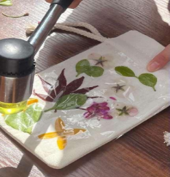 草映千纹传承情,印花一捶显华韵。一支棒槌、一个白布袋、一棵草、一朵花,捶出一幅幅独特的创意图画。活动现场在负责人的带领下同学们将收集的植物叶用明矾浸泡,仔细地将叶子平铺在帆布包上。使用锤子轻轻地敲打植物叶,让叶片中的天然色素渗透到布料中,形成精美的图案。经过反复的拍打固定后,普通不过的树叶草茎,化作一幅幅生动图画,仿若自然之精灵在布袋上跳跃。通信221班马玉林说道:“虽然制作过程中遇到小困难,但当我展开自己亲手制作的帆布包时,那份成就感让所有的努力都变得有意义。这次体验不仅让我领略了捶草印花的艺术之美,每一敲击,也让我深刻感受到了传统文化的深厚底蕴和匠人精神的可贵。”