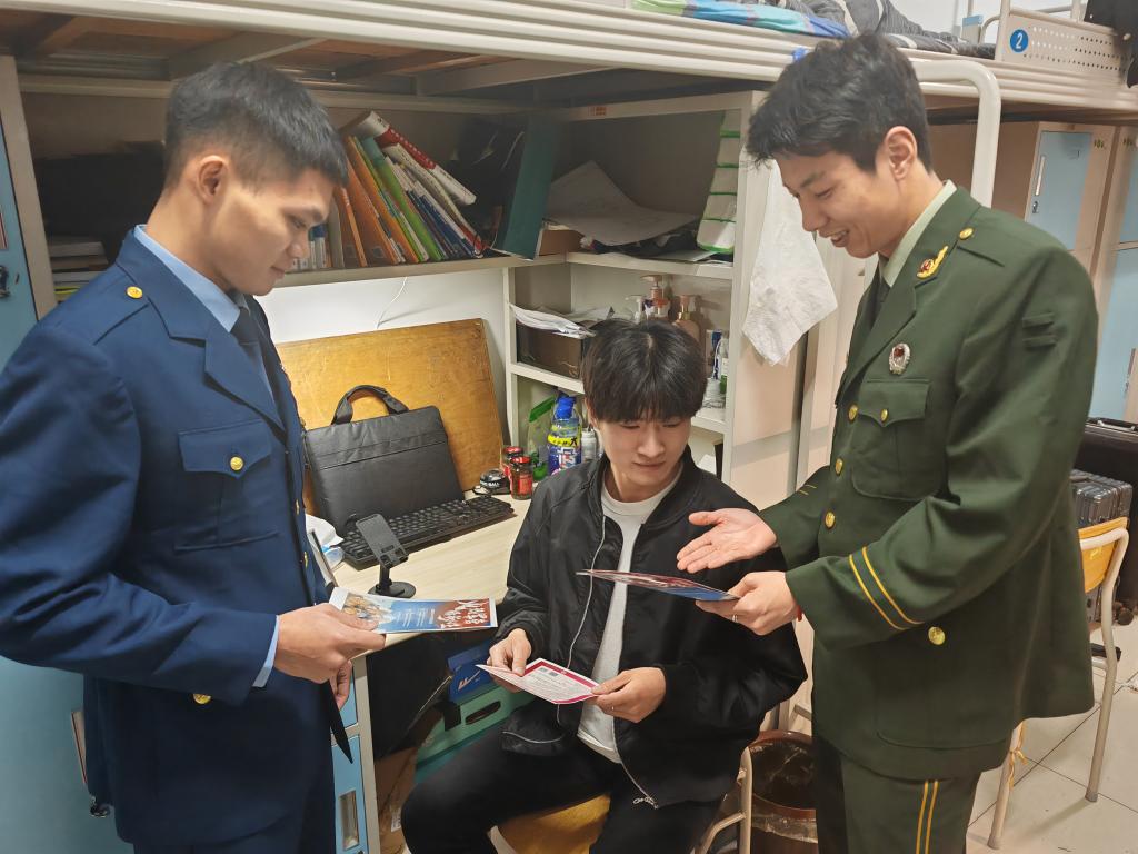 为强化学生国防意识,提升学生应征入伍积极性,发挥退伍学生作用, 管理工程学院积极组建2024年征兵宣讲团。4月24日,宣讲团由辅导员高鹏磊带队深入学生宿舍开展征兵宣讲活动。