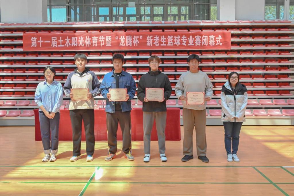 近日,土木工程学院在风雨操场体育馆内举办“龙腾杯”新老生篮球赛闭幕式。学院党委副书记邵先锋,辅导员戴翎、张凤娇、王彬四位参加。