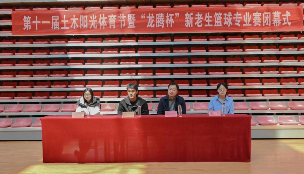 邵先锋讲话,强调无体育不人生,无运动不青春,希望学院越来越多同学积极参与体育活动,强身健体。此次篮球赛锻炼了同学们体魄,提升团队协作能力,增进新老生之间友谊,希望同学们能够将比赛中的拼搏精神和团队协作精神延续到学习和生活中,展现土木学子积极向上的青春风貌。