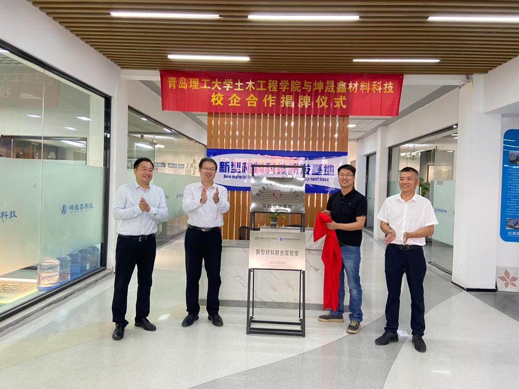 5月30日下午,土木工程学院党委书记王乐生、副书记邵先锋、副院长曾森、副院长张鹏、本科生第三党支部书记张凤娇一行前往山东坤晟鑫新材料科技有限公司举行共建实践教学基地、新材料联合实验室签约授牌仪式并开展座谈交流。山东坤晟鑫新材料科技有限公司总经理赵九东、商务经理解兰霞、市场部经理郑昌华、项目经理汲生坤等人参加交流。