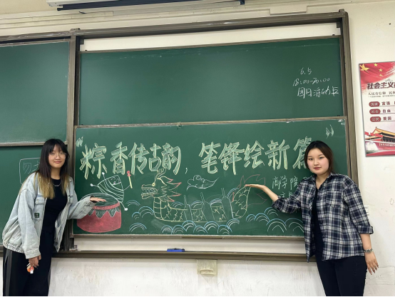 端午送祝福,笔锋绘新篇。学院组织各团支部开展“粽香传古韵,笔锋绘新篇”主题团日活动,以班级为单位,以小组间接力的形式完成龙舟绘画、独特香粽等画作,画作既充满浓浓的端午风味,又体现出大学生对传统文化的现代演绎。随后,学生们结合有关端午的诗句,发挥独特想象,创作出个人书签,用与端午节相关的祝福语给即将高考的学子们送上最真挚的祝福。活动过程趣味横生,学生们在文化氛围里体会不一样的端午节。