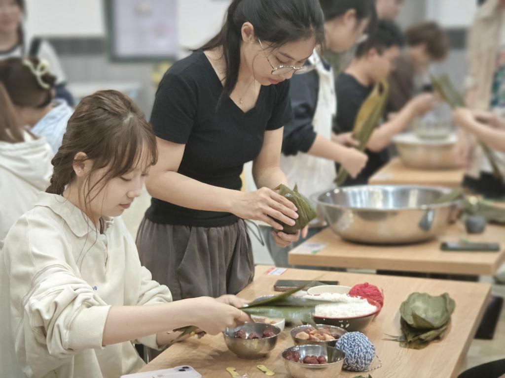 粽里传古韵,端午传文化。学院于祥园食堂四楼组织了一场包粽子活动,邀请全院学子来一次与粽子的“约会”。缕绳、淘米、洗粽叶、包粽子……现场气氛热烈,有经验者耐心教授,学习者细心学习,折叠粽叶、投放糯米、填充馅料、抽线捆绑,大家围在一起热情地忙碌,经历了一个下午的劳动,一个个有棱有角的粽子一排排地呈现于眼前。交通222班刘琳表示:“虽然大家的包粽子水平参差不齐,但每个人都充满了热情和耐心。大家互相交流着包粽子的技巧和经验,分享着彼此的成果,整个包粽子现场充满了浓浓的节日氛围和人情味,让我感受到了传统文化的魅力和亲友团聚的温暖,是一次非常难忘的经历!”