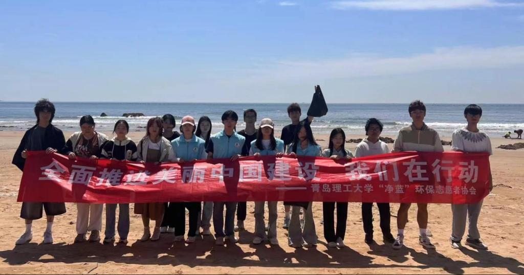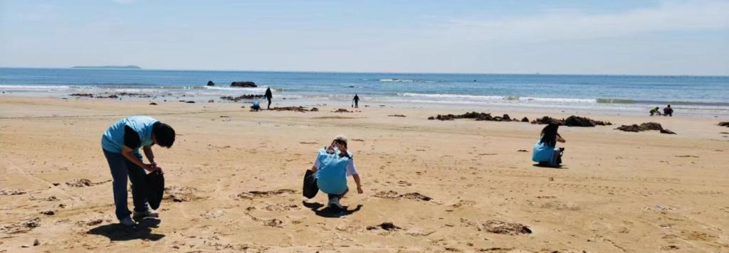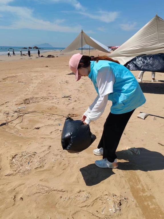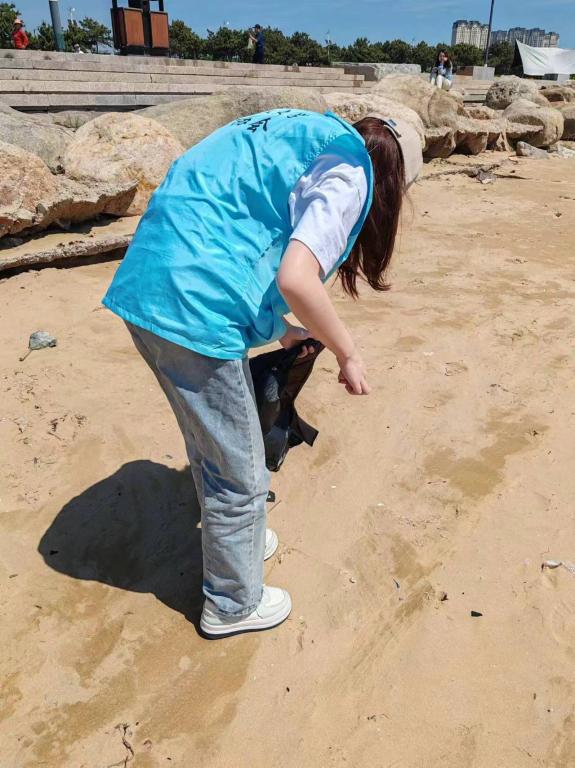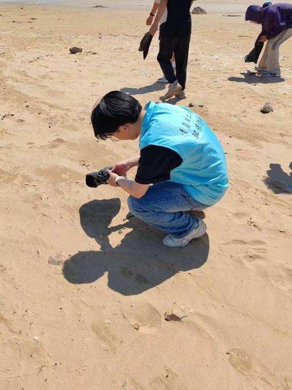 最后,环工221班班长耿真带领环工221团支部同学与环协的同学一同前往海滩,进行了净滩的实践活动,身体力行地践行“保护地球母亲,从小事做起”的理念。