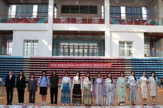 践行文化育人“传承曲”,丰富形式弘扬传统文化。飞花令、编五彩绳、设计端午抱枕、师生同包粽子、制作香囊、彩绘扇面、挂艾草……每逢端午节,商学院都会组织开展各具特色的端午节系列活动,并在活动中融入传统文化知识、家国情怀和集体主义价值观教育等元素,帮助学生在多彩的民俗活动中感受传统文化的魅力。在今年国际劳动妇女节,学院举办以“女性自强”为主题的校园文化活动,以中国历史发展为脉络,用一场校园劳动秀快闪,展示出古代嫘祖缫丝、唐代捣练缝衣、民国教师教书育人等劳动场景,鼓励学生自立自强,通过自己的劳动为社会发展做贡献。“学院举办的传统文化类活动,让我们感受到了传统文化魅力,在潜移默化中了解传统文化,树立文化自信。”学院财务管理专业孙佳睿同学分享道。