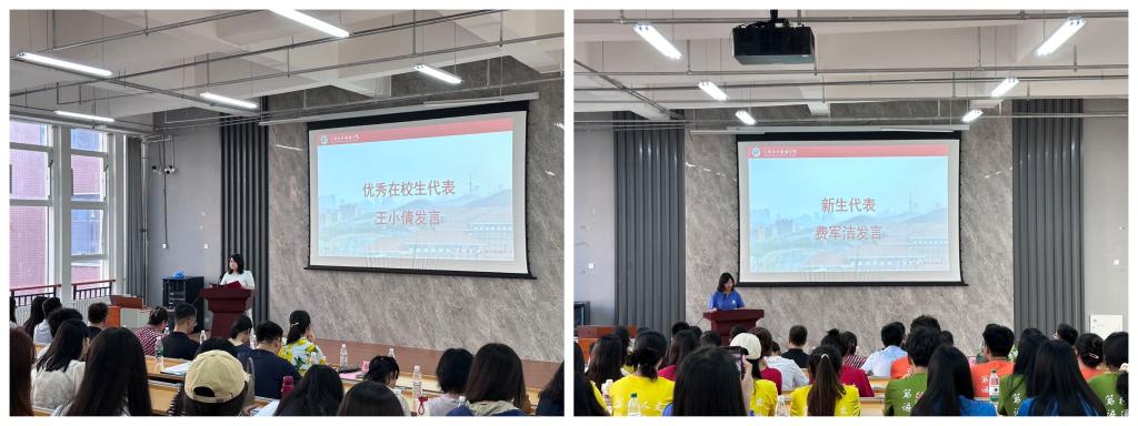 研究生导师代表江建利分享了自己的教学理念和对研究生教育的期望,给新生们提供了宝贵的学术指导。优秀研究生代表王小倩分享了自己在读研期间学习和生活经验,鼓励新生们积极参与学术研究和校园活动。研究生新生代表费军洁表达了对即将开始的研究生生活的期待,将知识转变为推动社会前进的力量。