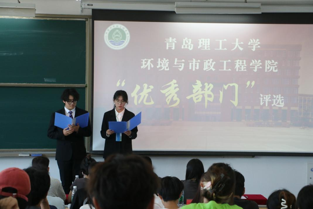 为加强学生干部队伍管理,强化管理育人体系,着力构建职责明确、思路清晰、运转高效的团委、学生会组织,环境与市政工程学院于2024年9月5日举办了“优秀部门”评选活动。学院研究生辅导员孙川、于哲源,本科生2022级辅导员纪宇、王玉雪,2023级辅导员何珊珊、罗荣,以及学生会、团委、研究生会各部门、青云学社负责人参加此次活动。