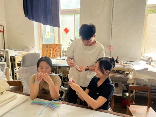 2022级各团支部成员利用课余时间,通过观看视频、请教交流等方式,学习手工编织花的制作技巧。学生运用手中的工具,使用扭、捆、粘等方式,借助柔软的扭扭棒,搭配自身独特艺术视角,纷纷制作出独具新意与心意的手编花束,每一束都蕴含着对老师的深深感激与美好祝愿。环设222团支部周山山同学对此次活动深有感触,他表示看到自己手中的材料从最初的单一物品逐渐变成一束色彩鲜艳的编织花,他感到十分开心。他将自己的花束命名为“永不凋谢的花束”,不仅表达了自己对老师的敬爱与尊重,更是对老师始终如一辛勤付出的感谢与对老师无私奉献的敬意。