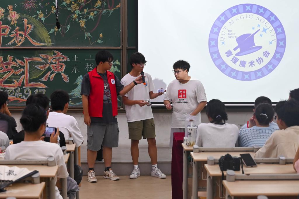 中秋节不仅承载着独特的民族情感,还蕴含着深厚的文化内涵。现场为观众准备了猜歌迷、答典故等游戏环节,通过嫦娥奔月、玉兔捣药、击水球、海底捞月等小游戏,让远离家乡的学子们在校园中也能感受到传统节日的韵味与家的温暖,在欢声笑语中了解并学习中华优秀传统文化,为温馨的中秋之夜增添了一抹欢乐色彩。