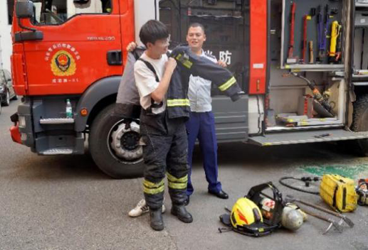 党团聚合力。艺术与设计学院于9月25日前往市北区威海路消防救援站开展“消防站党团携手,共绘安全新篇章”主题党团活动。青年党员、团员代表现场观摩各类消防装备,近距离学习灭火器使用方法,亲身体验穿戴防护服的艰难与不易。并在专业人员的指导下,模拟火灾场景,分组体验灭火器的实际操作。同时,充分运用专业优势,与消防救援站的战士们一同创作消防安全板报。在向守护我们安全的“火焰蓝”致敬的同时,不断提高学院党员、团员青年责任意识,凝聚“青”合力。