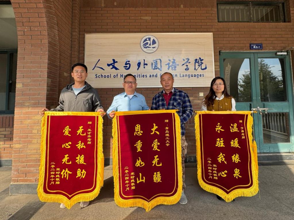 “非常感谢学校、学院领导和老师对孩子无微不至的照料和关怀,这份恩情我们全家将会永远记在心里!”10月7日下午,2024级新生家长送来了一份特殊礼物——三面熠熠生辉的锦旗,其上分别镌刻着“大爱无疆 恩重如山”“无私援助 爱心无价”“温暖源泉 永驻我心”,深切表达了对学校的崇高敬意和感激之情。人文与外国语学院党委书记王粲、2024级新生辅导员王才升和班主任于淼代表学院一起接收了锦旗。