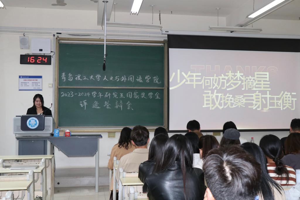 为扎实做好研究生国家奖学金评选工作,10月9日下午,人文与外国语学院2023—2024年度研究生国家奖学金评选答辩在主教学楼B207举行。学生处教育管理科张翔、社会工作教研室主任刘世颖、网络与新媒体教研室副主任高正瀚、英语专业教授江建利、学术委员会委员金仙玉担任评审,人文与外国语学院全体研究生现场观摩。