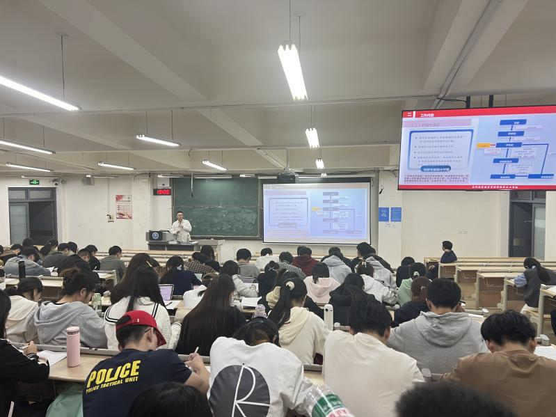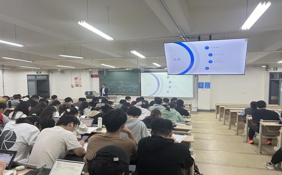 分享会伊始,万进永、朱敬旭辉从考研动机、学习方法、择校经验、资料准备、时间安排、计划制定等方面为切入点,向同学们分享了考研经验,强调备战考研要加强专业知识、夯实数学基础、提高政治敏感度和丰富英语阅读能力,并针对备考冲刺阶段进行总结。第一,关于英语和政治方面,每天至少需要抽出半天的时间背诵基础知识点,早、中、晚,不断复盘,加深记忆;第二,关于数学方面,要始终对数学保持热情,将数学分为三个复习阶段,不同的复习阶段有不同的学习方法和目标、任务,重视解题思路、技巧和错题的复盘,不能好高骛远;关于选择备考院校,可以结合个人的兴趣、能力、地理位置等方面,理性选择报考院校。分享会最后,王登榜鼓励同学们积极调整心态,正确面对考研过程中的压力与挑战,并强调了本科教育教学评估、就业选择、安全等注意事项。