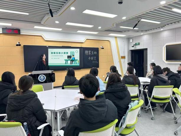 加强朋辈引领,为每个新生班级配备“导航学长(学姐)”,从学业规划、学习方法、考研出国等多个模块对新生进行指导,搭建成长“互拉圈儿”,增强新生学业生涯规划意识,实现朋辈联动。“朋辈互助小课堂”打破了传统教学模式,以更为轻松、互动和个性的方式开展,充满了趣味的案例分析和问答环节,开展“亮身份、树形象、当先锋、做表率”的党员挂牌活动,强化“典型示范”,打造学习探究“群体效应”,最大程度发挥朋辈引领力量,更直接地向新生传授必备“技能”,让新生清晰了解有关社会实践、学习学风、创新创业等方面的知识,预先做好未来规划。