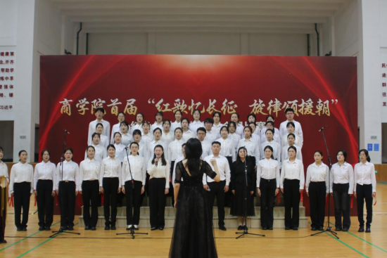 10月26日晚,商学院举办首届“红歌忆长征,旋律颂援朝”红色经典歌曲主题合唱比赛。近千名师生现场观看比赛,5000余名学生、校友、学生家长线上观看学院视频号直播,7.1万次爱心“赞”给了商学院的“红歌思政课”。