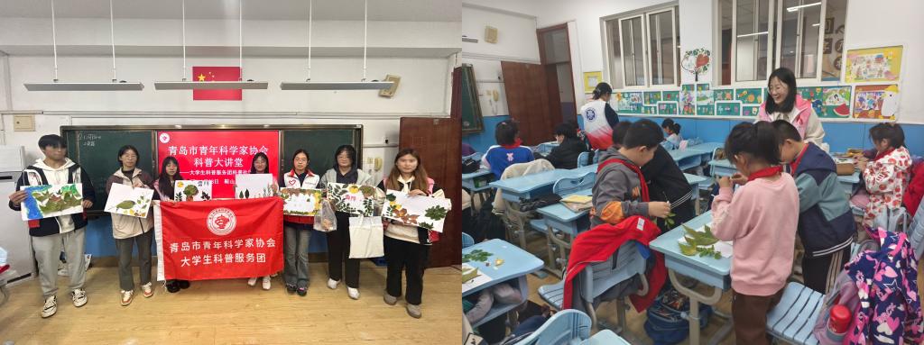 守文化本真,赴传承之路。为深入实施“大学生社区实践计划”,服务驻地,推动高校大学生志愿服务专业化、规范化和常态化开展,青岛市青年科学家协会大学生科普服务团——yl7703永利集团分队的志愿者赴鞍山二路小学开展科普进校园活动。服务团以“秋夜狂欢节-二十四节气‘霜降’科普进小学”为主题,通过生动丰富的视频和古诗词资源,向学生们介绍了霜降的来历、气候特点以及相关习俗,让同学们更好的理解、巩固科普内容。志愿者与学生们一起在校园里寻找最美的树叶,进行了一场别开生面的树叶画粘贴活动。学院深入实施“大学生社区实践计划”,深入基层社区开展科普志愿服务,青年学子们弘扬和践行“研当以报效国家为己任,学必以服务人民为荣光”的科技志愿服务精神,为社区注入新活力、新动能。