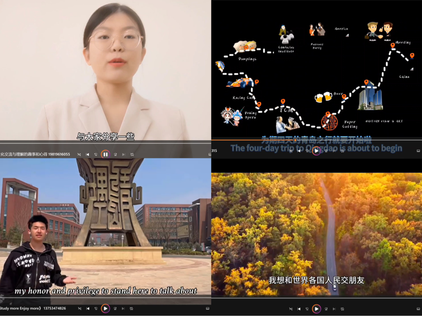 在视频征集环节,参赛同学拍摄并分享自己的国际交流经历,围绕项目学习心得体会、思想感悟、交流国家(地区)的风土人情、跨文化交际趣闻等内容进行视频剪辑。最终英语213班韩紫钰创作的《An Amazing Friendship》等3项作品荣获一等奖;会计232班张海彬创作的《Study more Enjoy more》等5项作品荣获二等奖;日语211班荆文硕创作的《樱花之旅》等7项作品荣获三等奖;中挪水221班王吉嵘创作的《我的国际交流故事》等15项作品获优秀奖。
