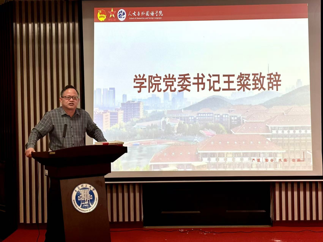 在“青马工程”培训会开班仪式上,学院党委书记王粲为开班仪式致辞。他重点从感悟思想伟力、坚持问题导向、勇担时代重任三个方面为青马学员指明前进的方向,希望各位青马学员要珍惜这次难得的学习机会,严格遵守培训纪律,在培训中学出担当、学出本领、学出成效。